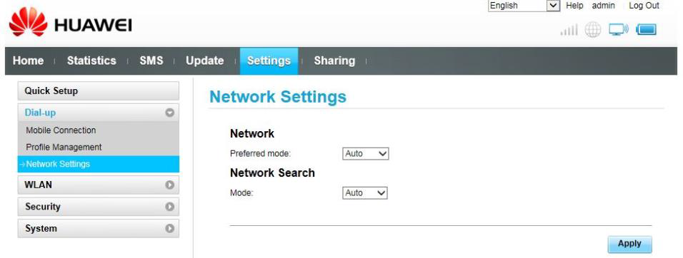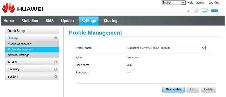 This will take you to the Huawei dashboard, select Settings and you will be prompted for a username and password.