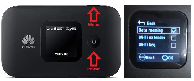 Press the Menu button on the MiFi to scroll through the options until you get to Data Roaming.