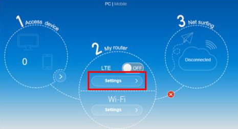 - At the dashboard screen, click on LTE Settings.