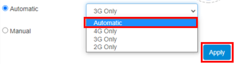 - Click on LTE Settings, then click the "Connection Mode" arrow.