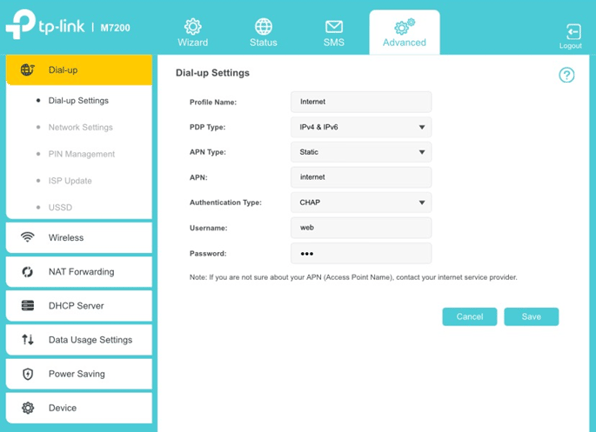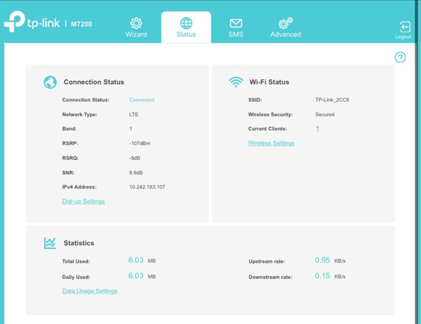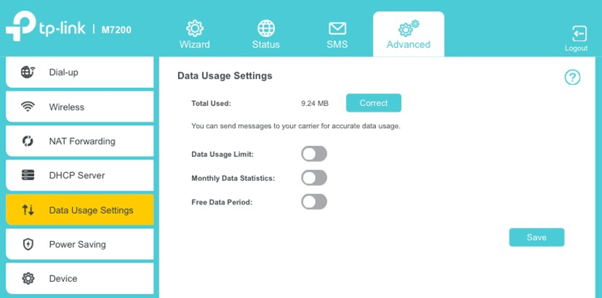 - If you would like to track your data usage on your TP-Link Mifi, this can also be done from the dashboard, this can be done by navigating to the advanced settings, and selecting the data usage tab.