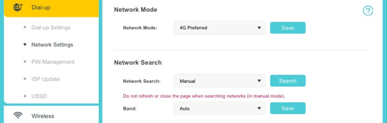 - If you want to perform a manual network search, navigate to advanced settings, expand the Dial-Up tab, and select network settings.